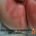 El tipo más común de dermatitis del pañal es la «dermatitis irritativa». La zona del pañal pasa la mayor parte del día en contacto con dos sustancias muy irritantes: orina y heces. Si su hijo tiene diarrea o si está le están saliendo los dientes―lo que conlleva a tragar más saliva que pasa a través de los intestinos― las probabilidades de desarrollar una dermatitis del pañal son mayores.